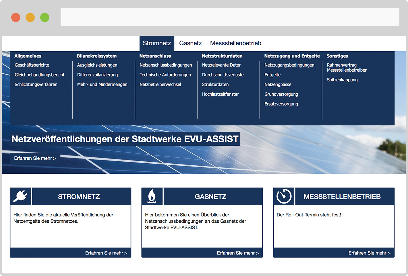 Netzveröffentlichungen der Stadtwerke EVU-ASSIST
